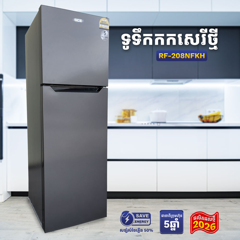 ទូទឹកកក SCE សេរីឆ្នាំ2026 ✅ ប្រភេទកកស្ងួត(No Frost) ✅ ប្រើInverter ✅ មានមុខងារMulti Airflow ✅ មកជាមួយLED Lighting ភ្លឺល្អ ✅ មានDigital Display កំណត់កម្រិតអង្សារយ៉ាងទំនើប! រូបរាងទាន់សម័យ មិនចាញ់ផលិតផលផ្ទះលេខ២ទេ 💪🏼 ជាជម្រើសដ៏ល្អបំផុតសម្រាប់ក្លាស្សេ ចំណីអាហារ ភេសជ្ជៈ ត្រីសាច់ បន្លែ ផ្លែឈើ ដែលអាចរក្សាគុណភាព និងអនាម័យខ្ពស់ ✅ លក្ខណៈពិសេស ទូមានពណ៌ខ្មៅ សន្សំសំចៃភ្លើង50% កកលឿន-ត្រជាក់លឿន សម្លេងស្ងាត់ល្អ គុណភាពខ្ពស់ តំលៃសមរម្យ មានការធានារយៈ២ឆ្នាំ